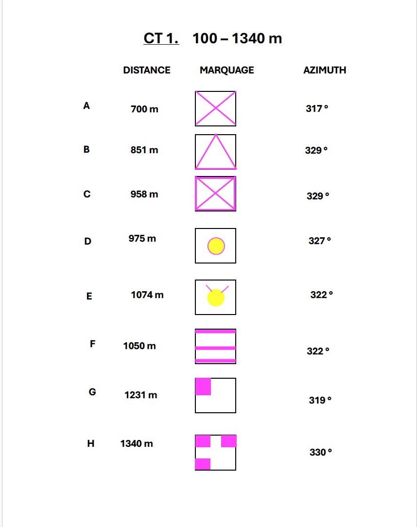 Plan des pas de tir et distances des cibles CALMELS (Hérault)