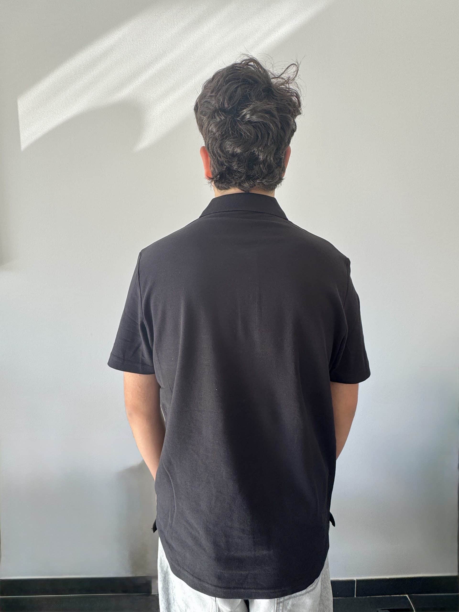 Polo noir piqué unisexe coupe droite